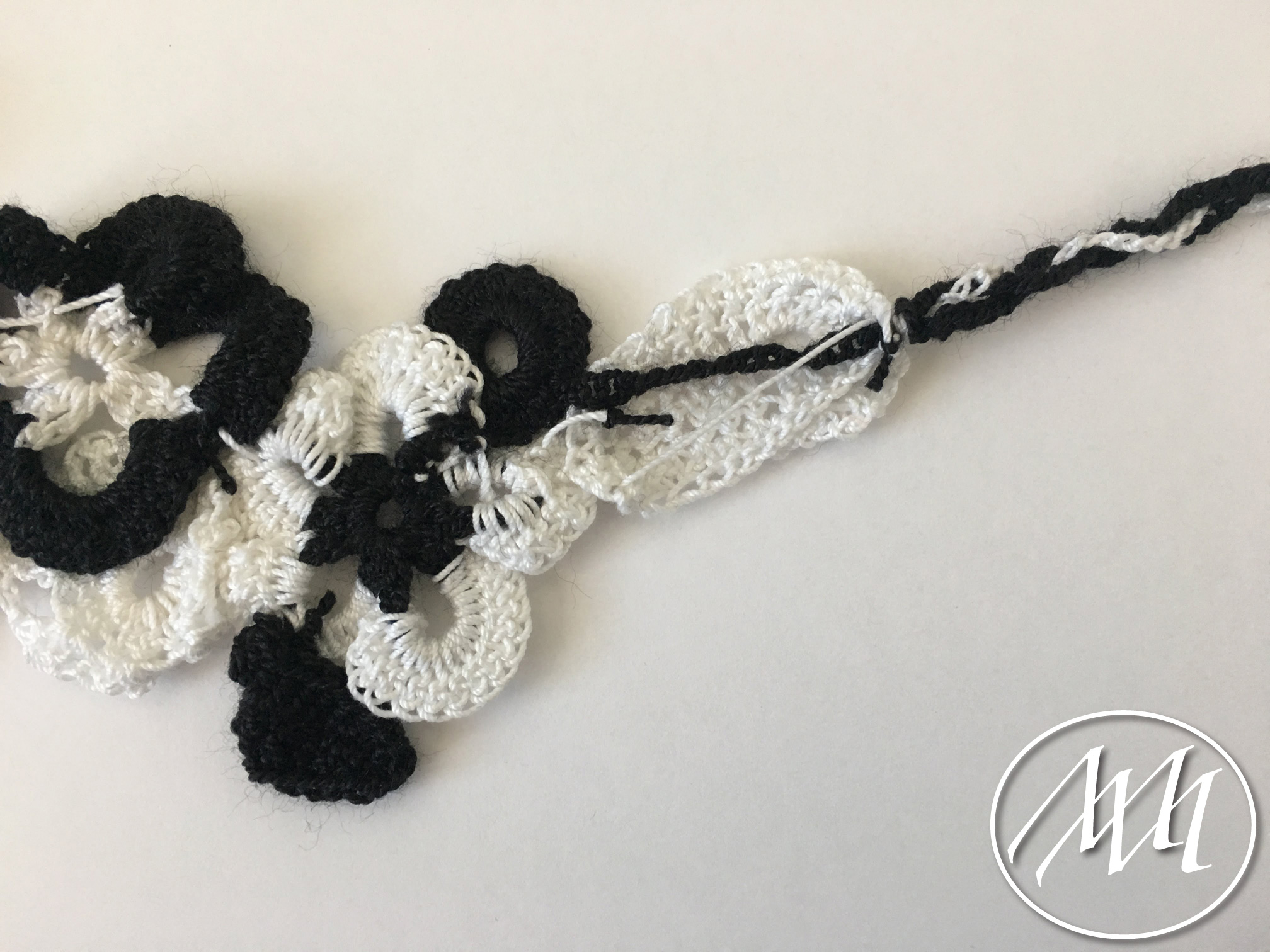 Chain 1: Join thread in left side of piece at joining location as shown in diagram; ch 110. Leave a long yarn tail at end of chain and do not knot.