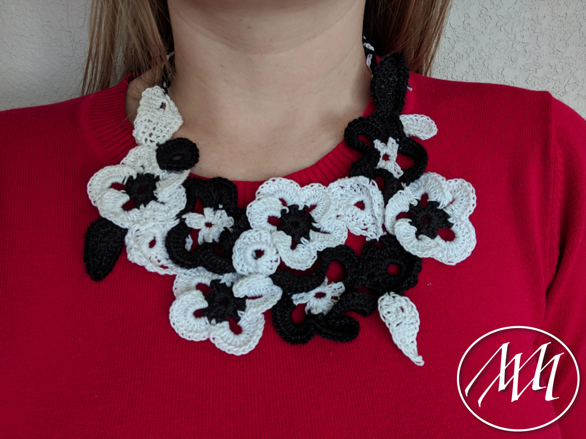 Make this gorgeous crochet flower necklace (Pattern by Linda Permann) with just a few materials and a little bit of time! The necklace matches these earrings!