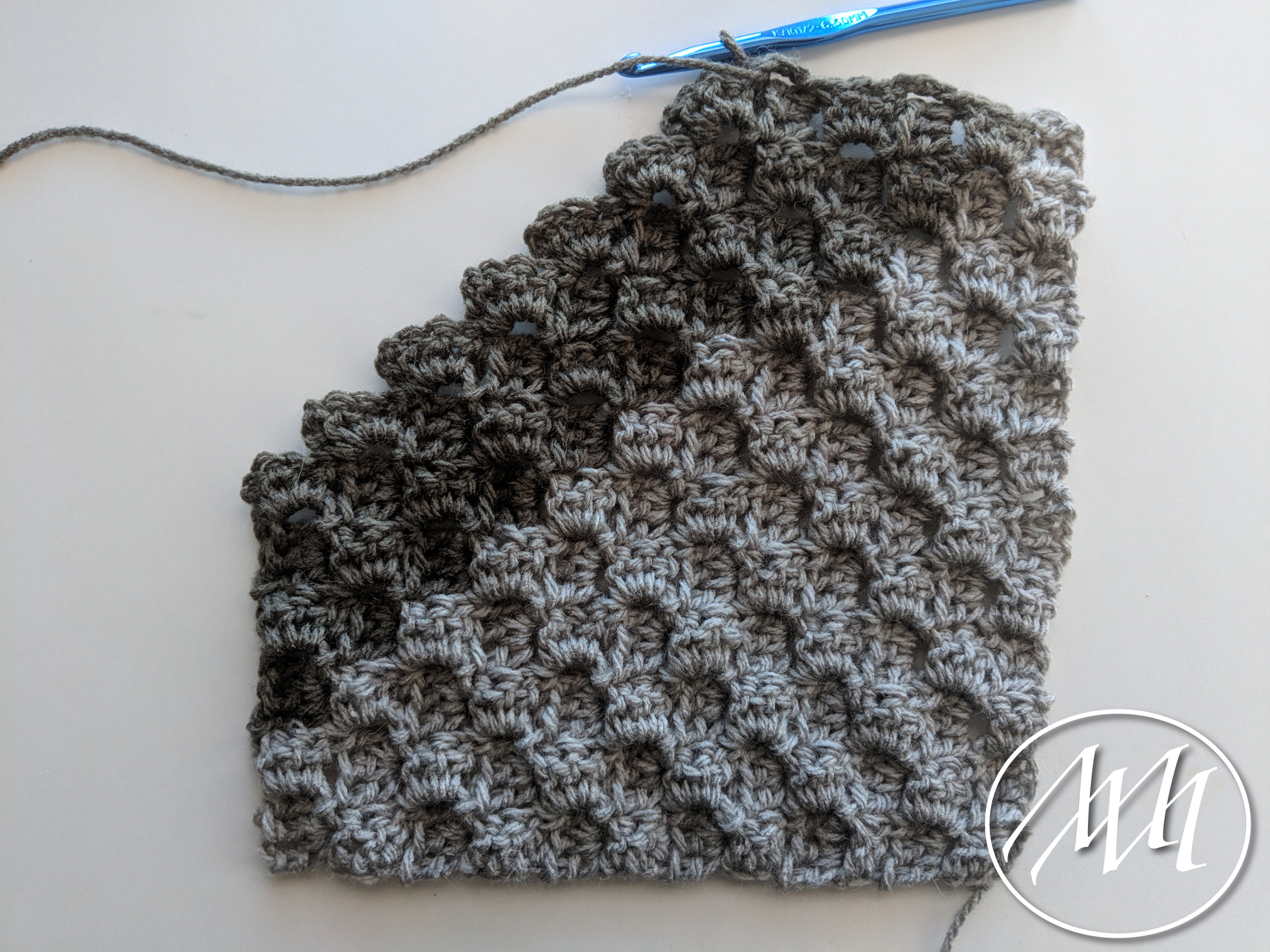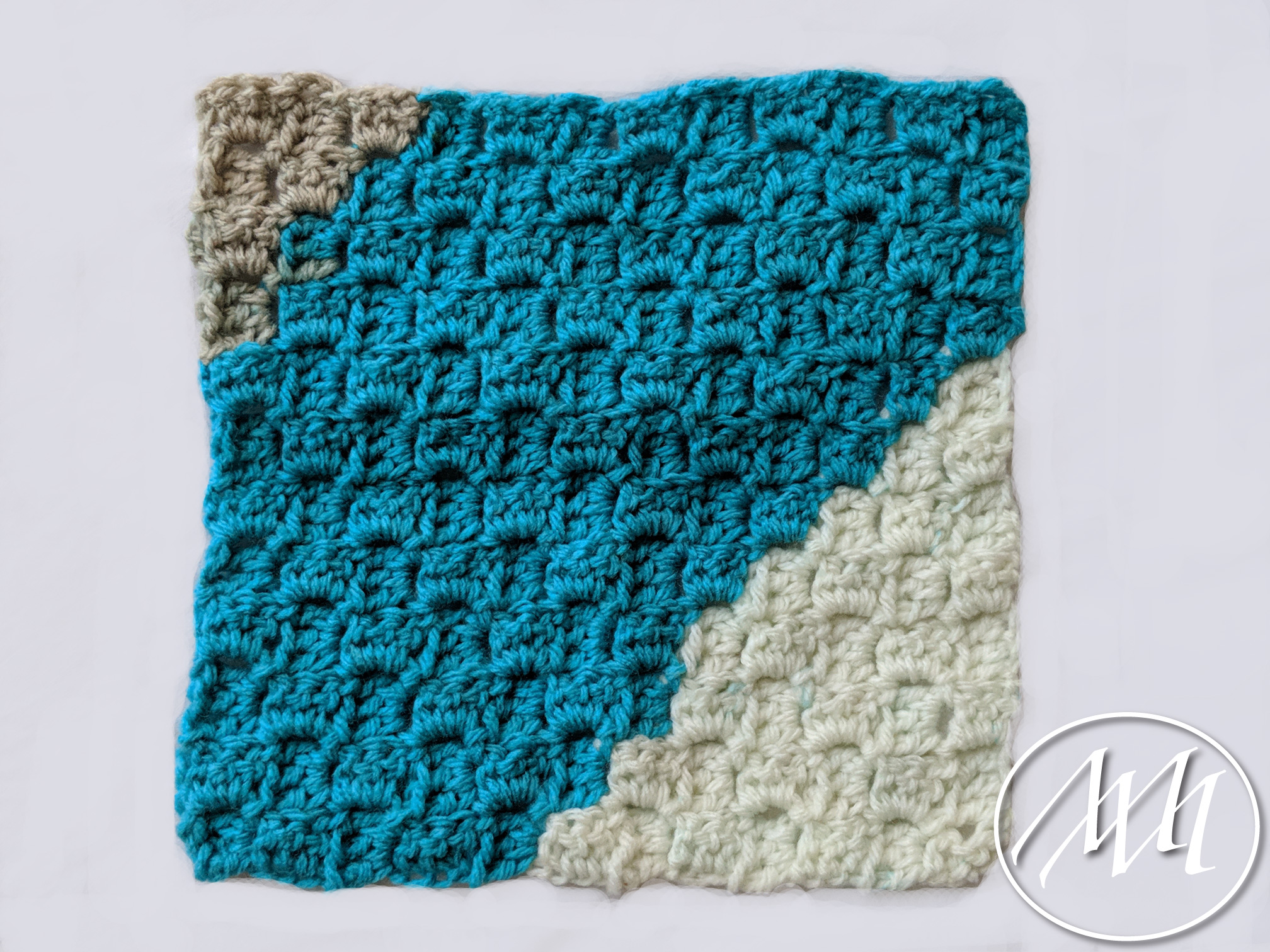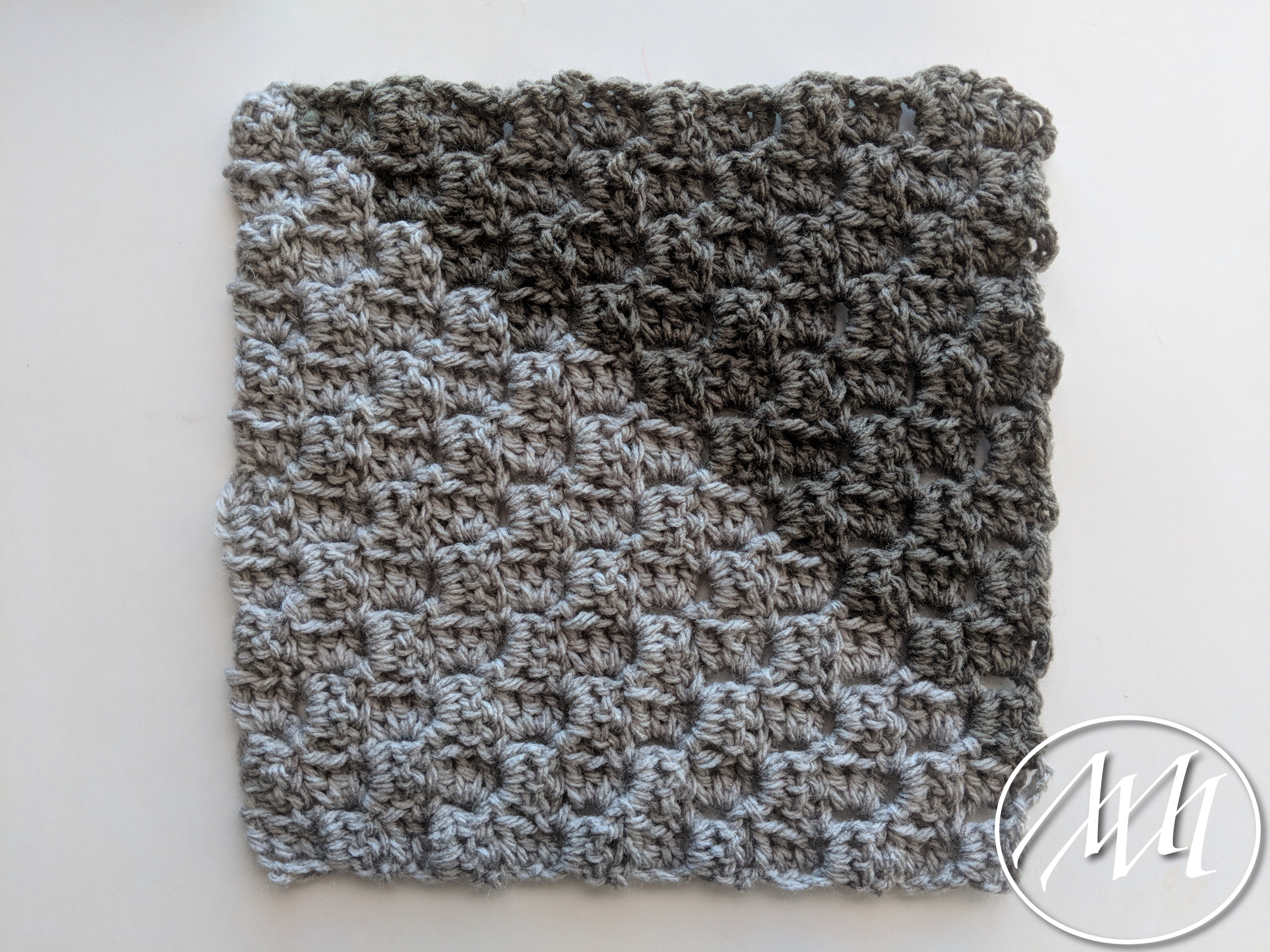 Once you reach your desired length, you can begin decreasing. Each row will have one less block than the row before it and you’ll decrease until you complete your last block in the other corner.