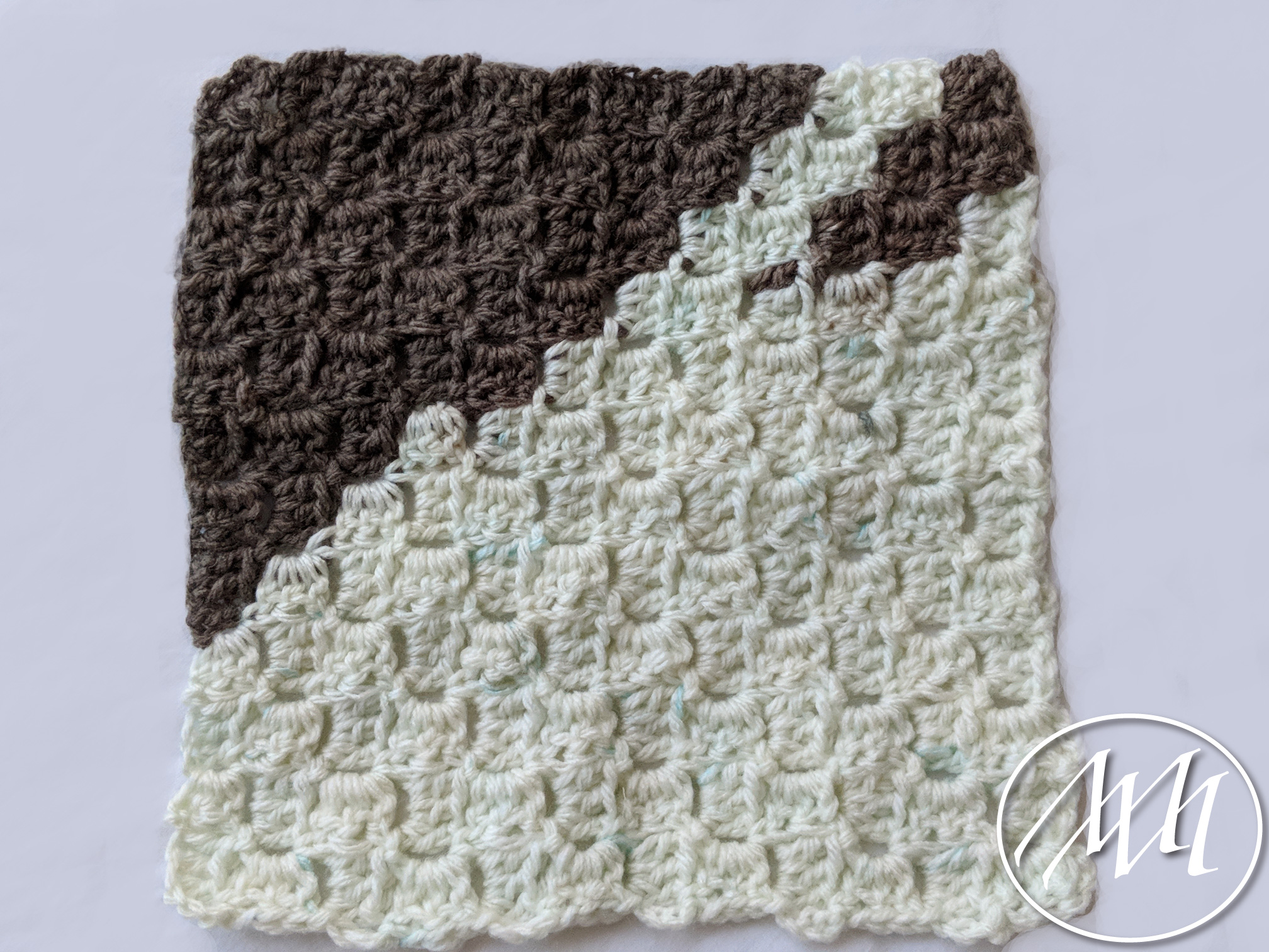 Mine were 12 blocks diagonal before I started my decreasing so they would be approximately the 10” x 10” to match the size of my two half double crochet dishcloths. (See how I measured it to make sure they would be the same size? 😉 )