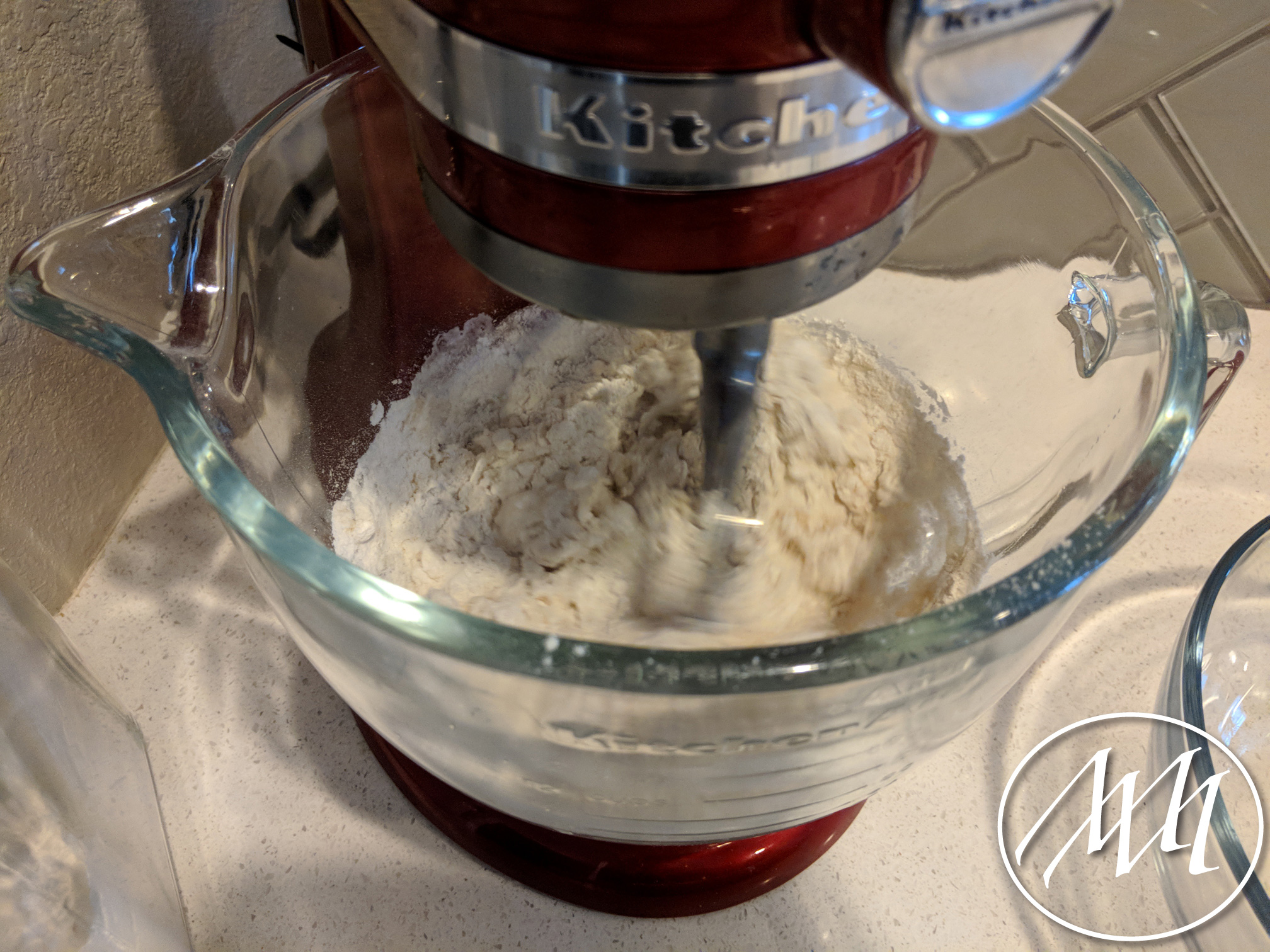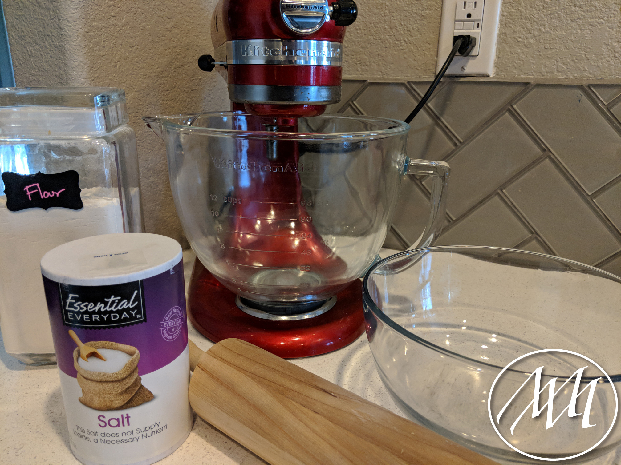 Mix the three ingredients together in a large bowl or stand mixer. Add additional flour to a clean surface so the dough doesn’t stick.