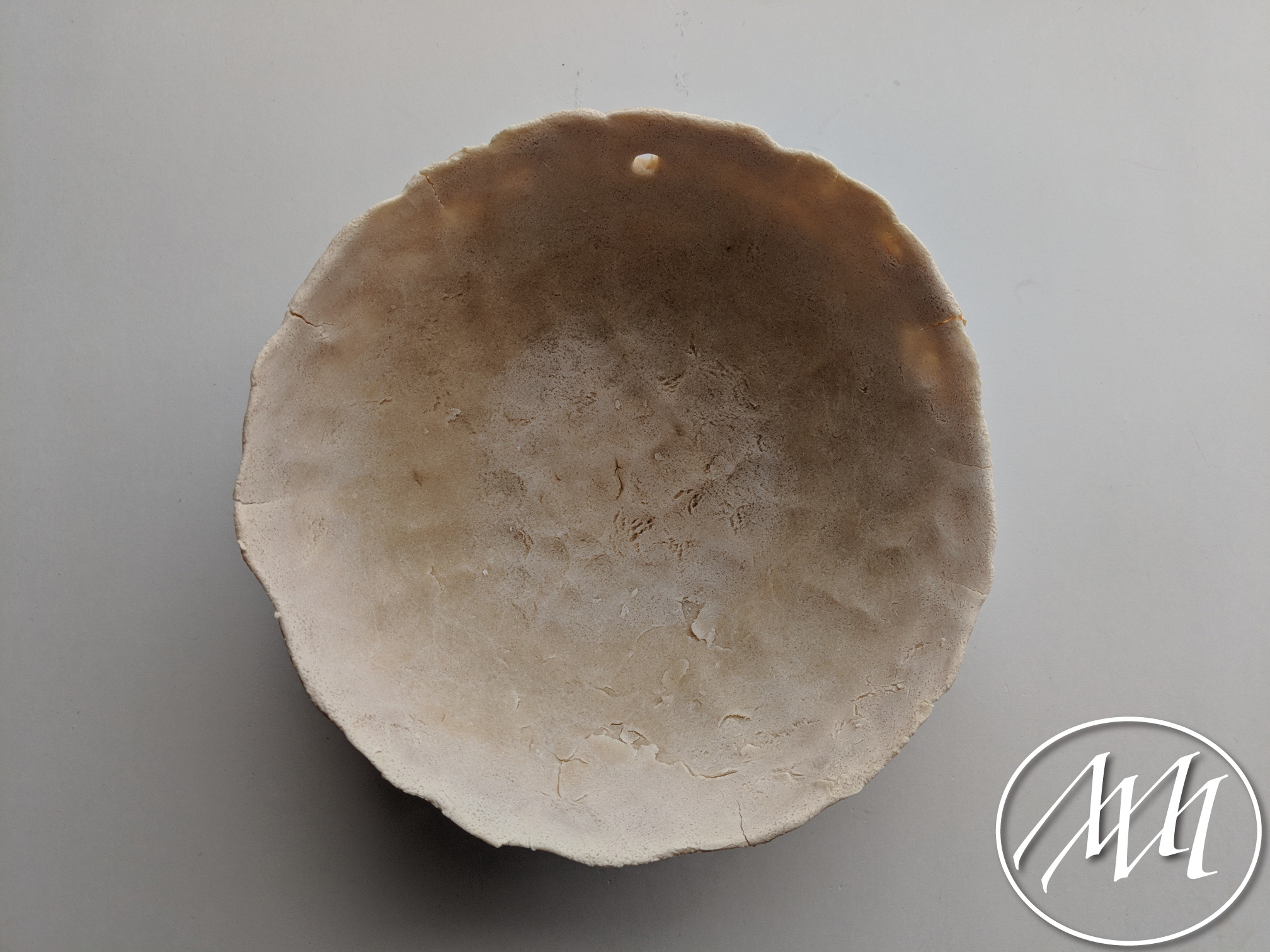 Once your bowl is completely dry, remove it from the bowl you used as the mold. You may need to use a knife or something to loosen up the edges a bit.