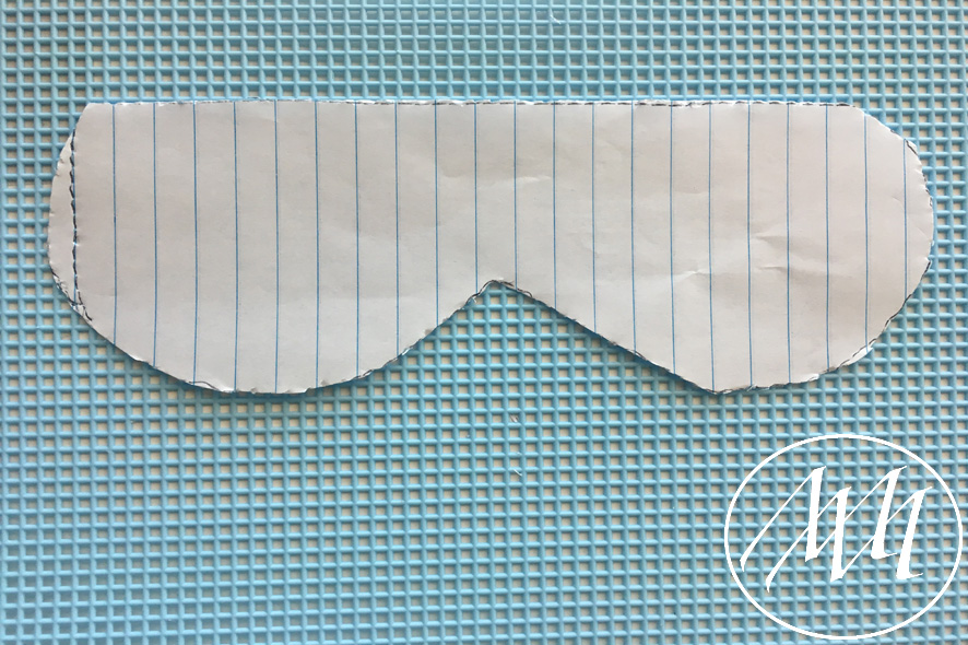 Draw a sunglass shape on a piece of paper and cut out around the plastic canvas following your template. We’ll use this for the glasses.