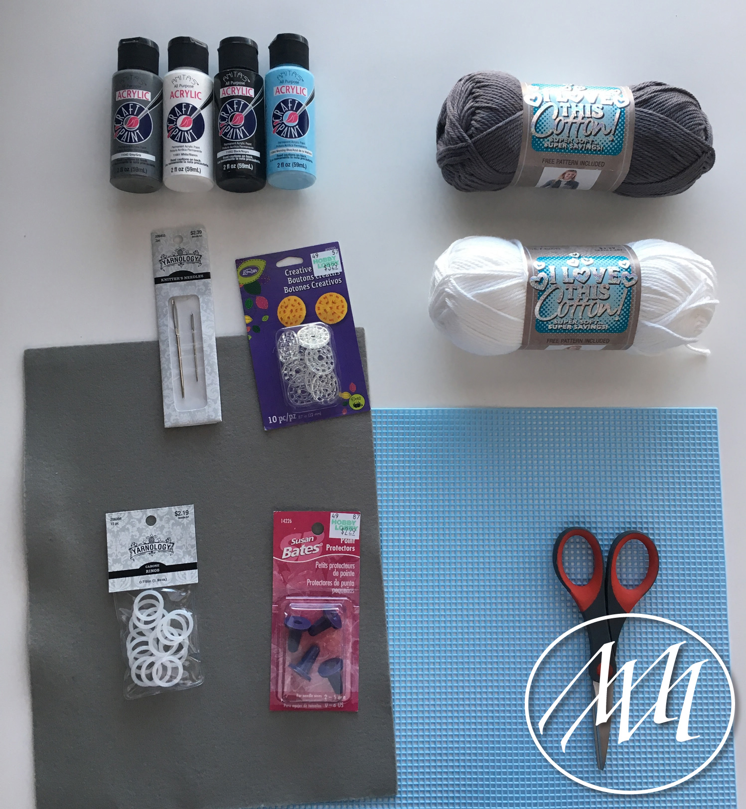 • Grey and white yarn