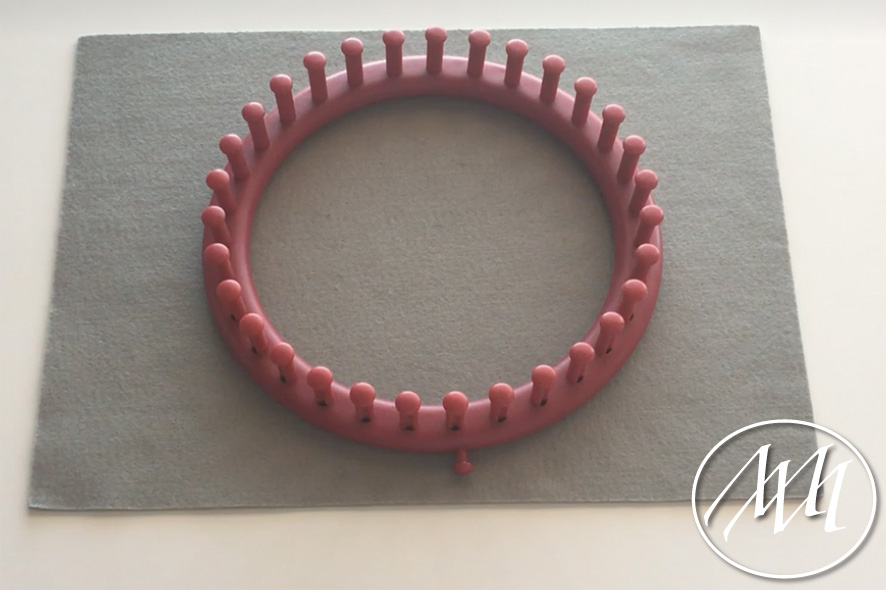 Use something circular to trace a circle onto the felt. I used a small loom to trace, but you can use anything that will give you the right size circle for your pet.