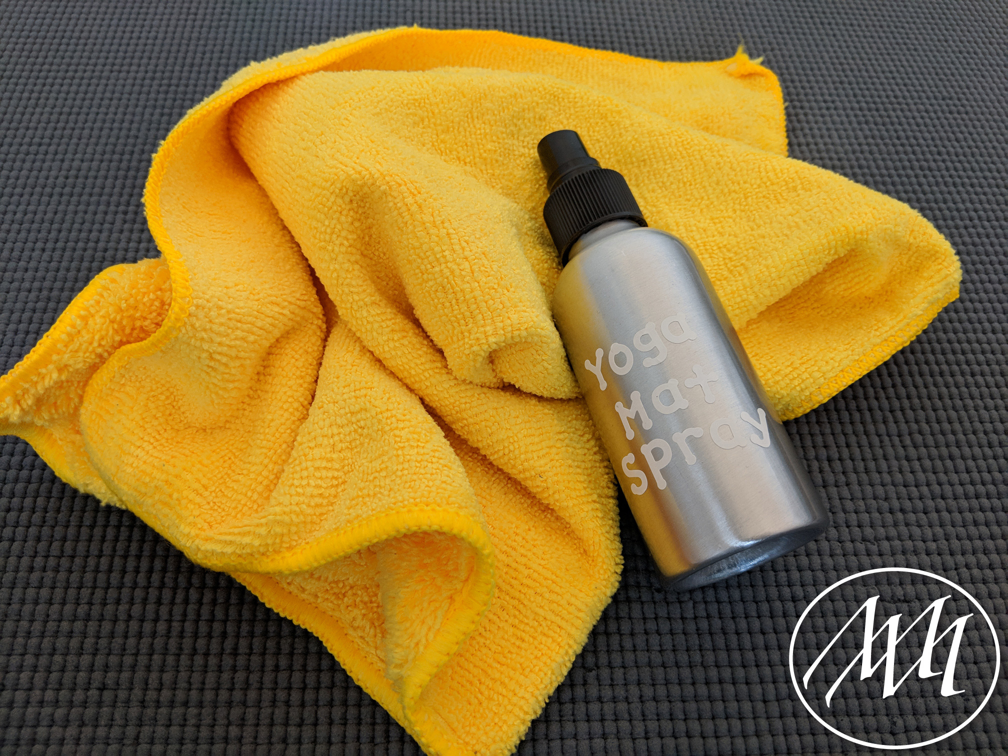 Mist the yoga mat from 10-12” away and wipe up with a paper towel or microfiber towel.