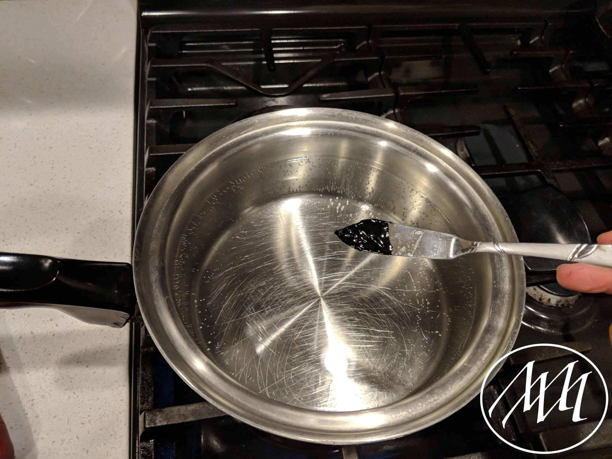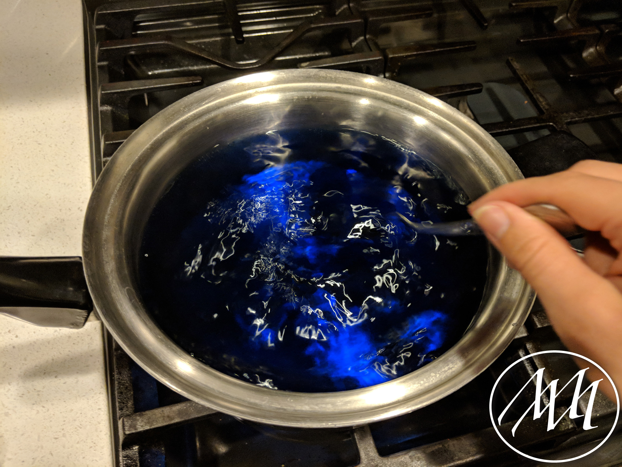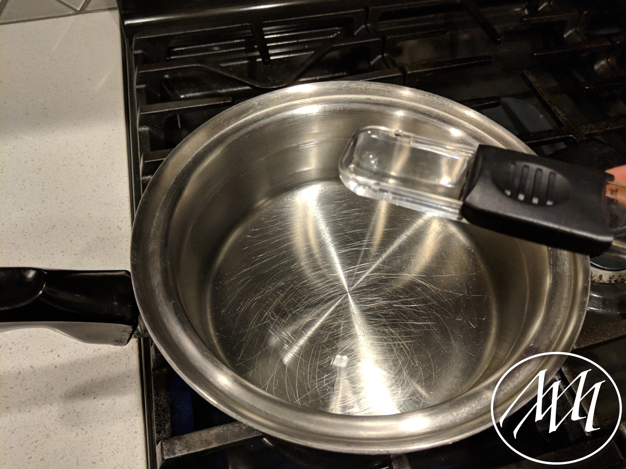 Add some water to your medium saucepan and bring your water to a boil on high. Add in one tablespoon of vinegar per cup of water. I added four tablespoons to mine.