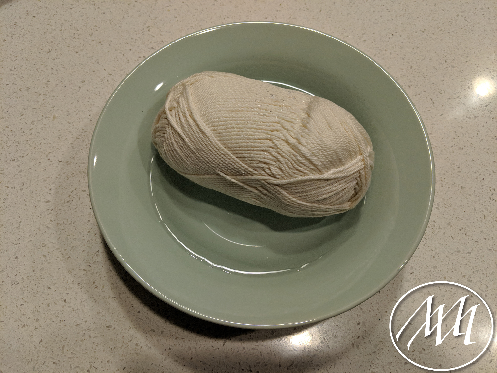 Wring out your yarn of any excess water and allow to dry. I don’t have a drying rack, so I just dried mine on a kitchen towel on the counter.