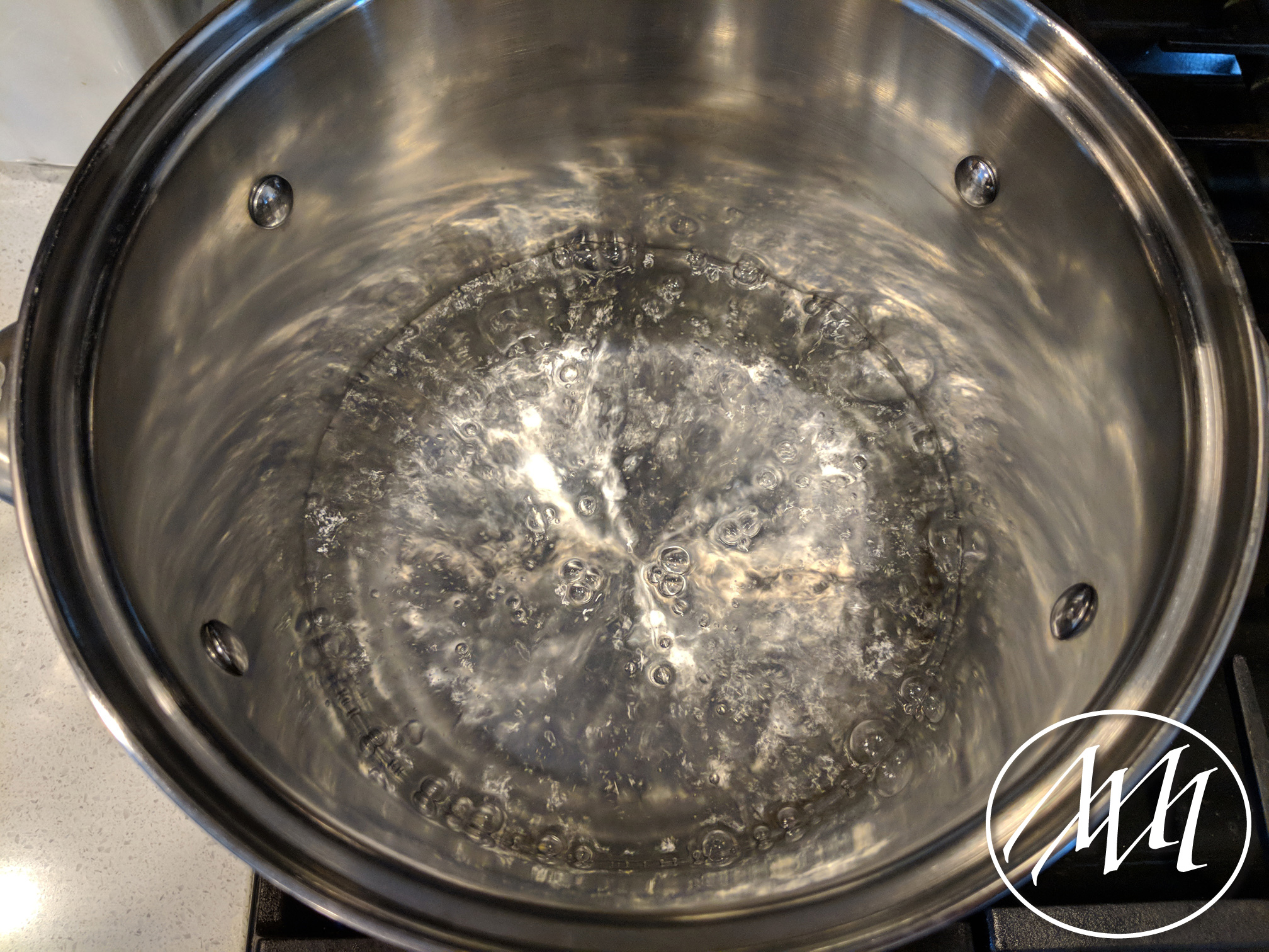 Bring the distilled water to a boil on the stove. Remove from heat. Pour water into the glass jar.
