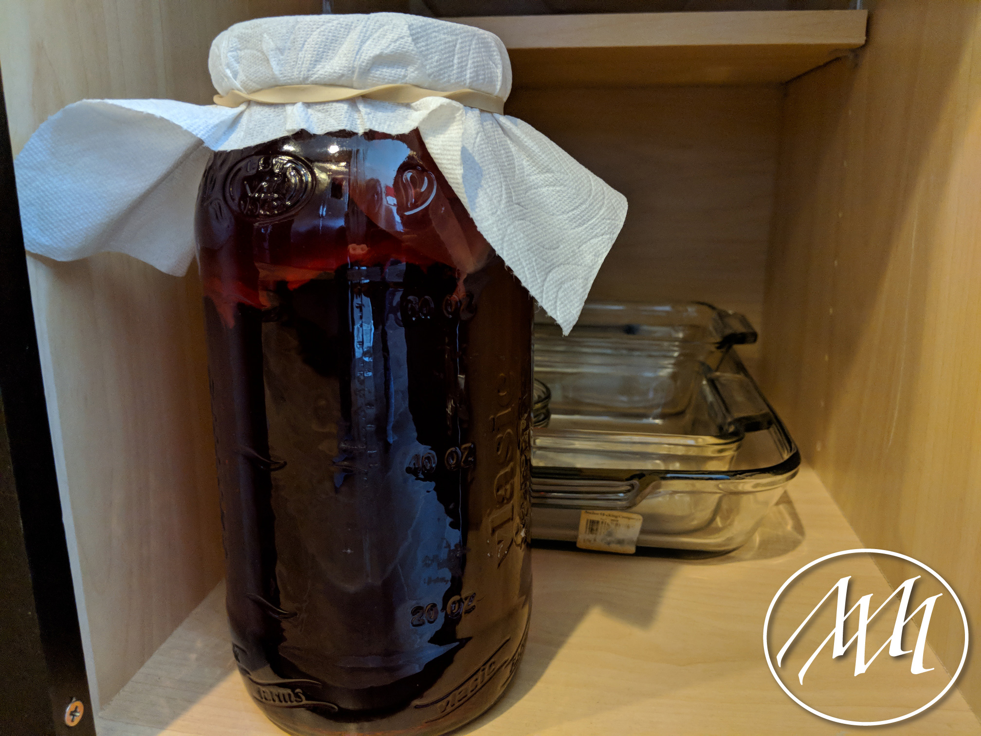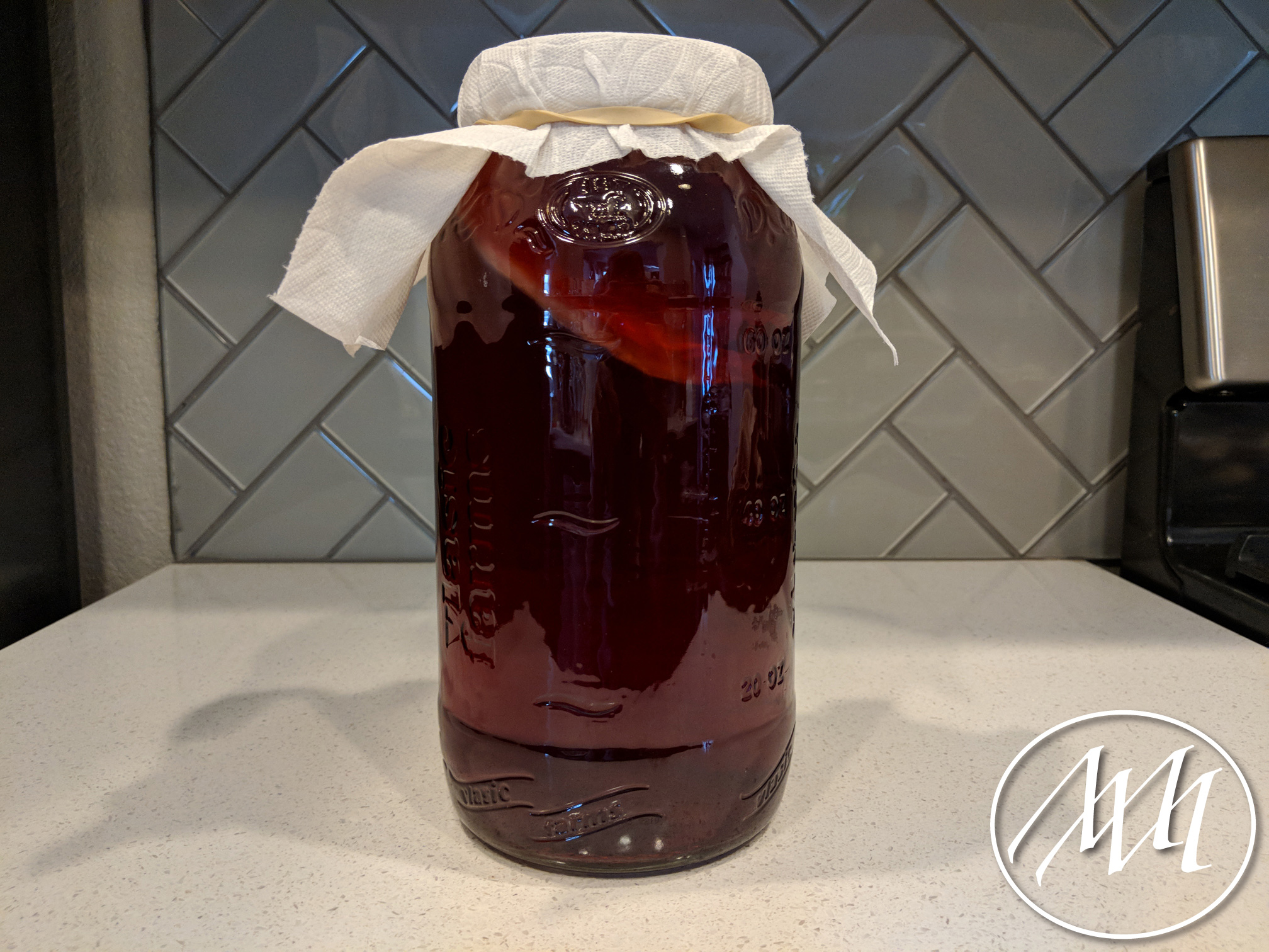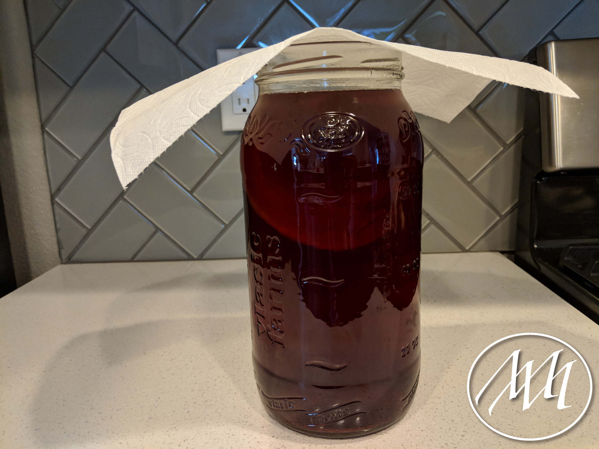 Place the jar in a dark, but warm place for 7-30 days depending on how you like your kombucha. I usually brew mine for about 10 days.