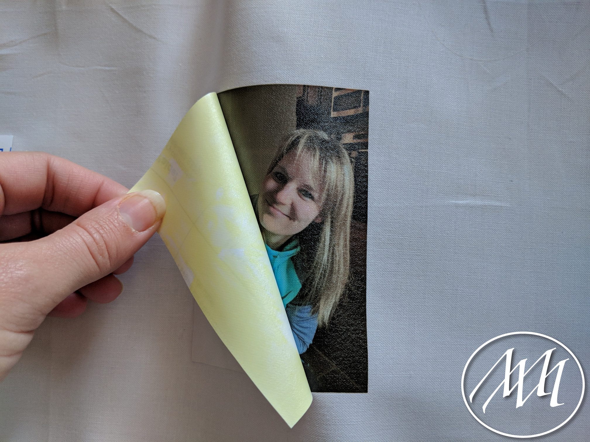 Let the photo transfer completely cool before trying to peel off the backing. If you do it while it’s still warm, it will peel up the edges with the backing and ruin the photo. Once it’s cooled, slowly peel up the edges of the backing making sure that no part of the photo is peeling up with the backing. If it does start to peel up, place the iron back down on top of the backing and repeat steps 7 and 8.