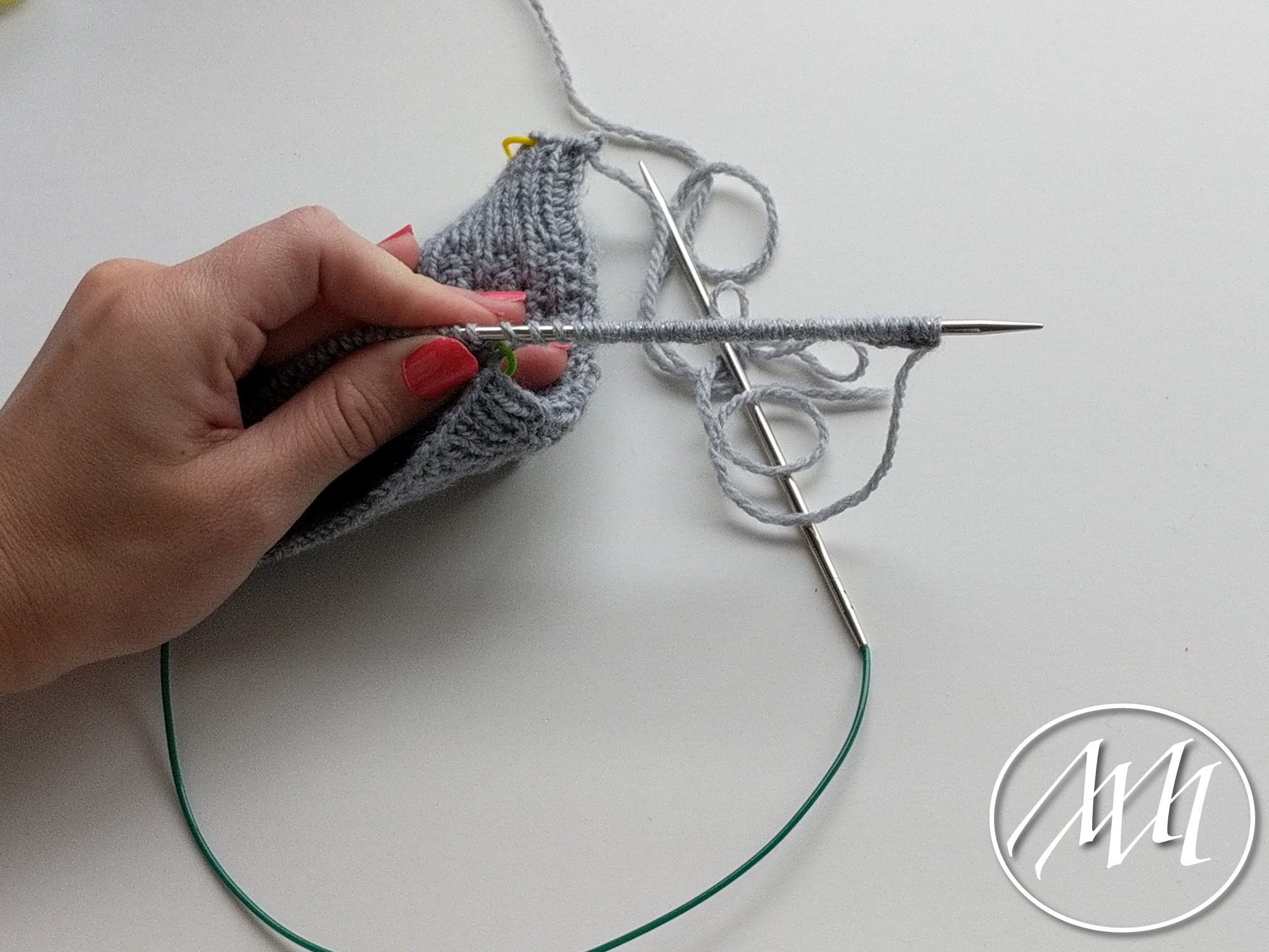 Knit the next round while increasing 8 stitches evenly around. I added 4 stitches on each side using the Front and Back increase method.