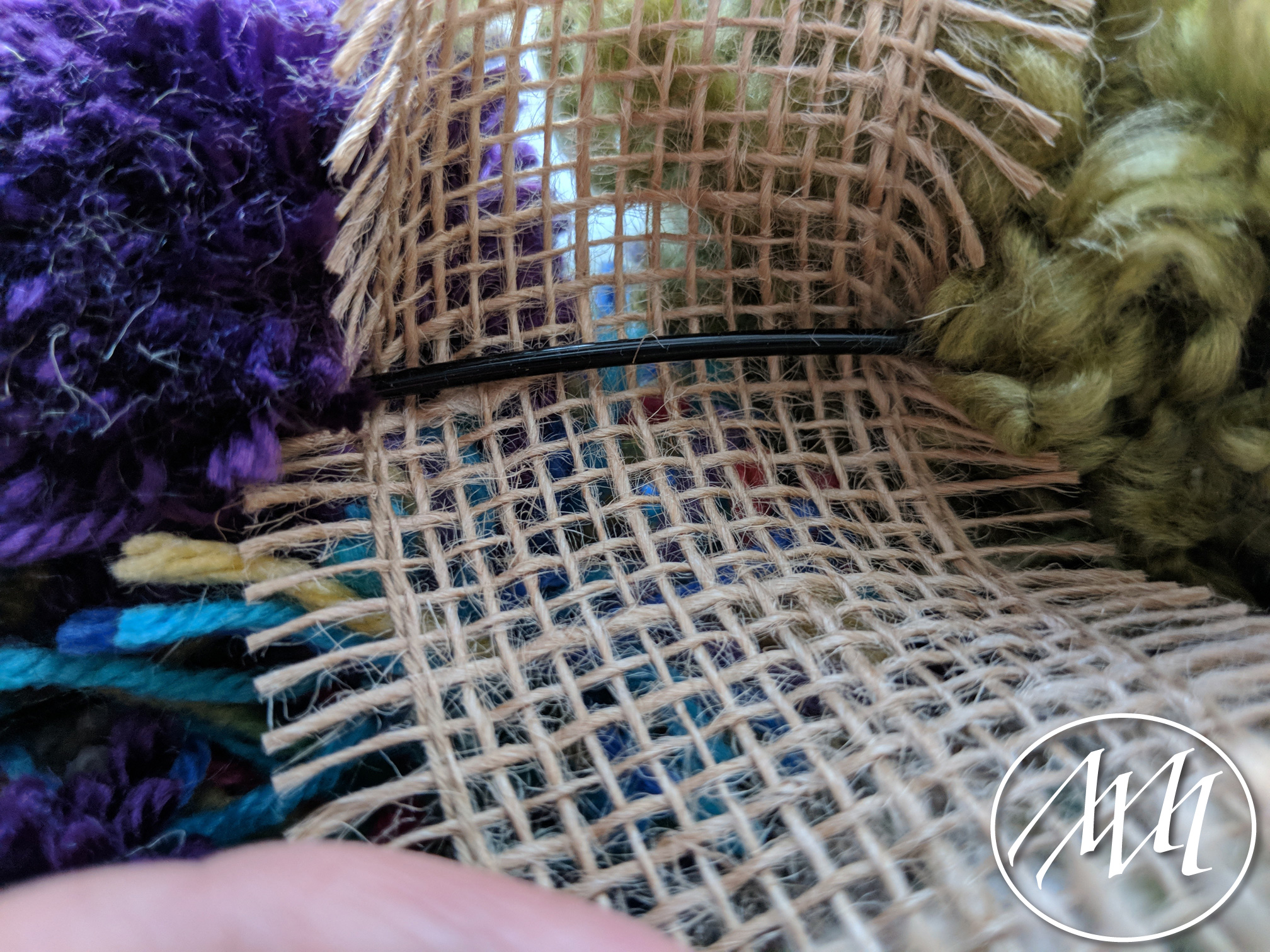 Once I had them all in place, I tied the pom poms together by tying a double knot with a pom pom nearby and cutting off the extra yarn.