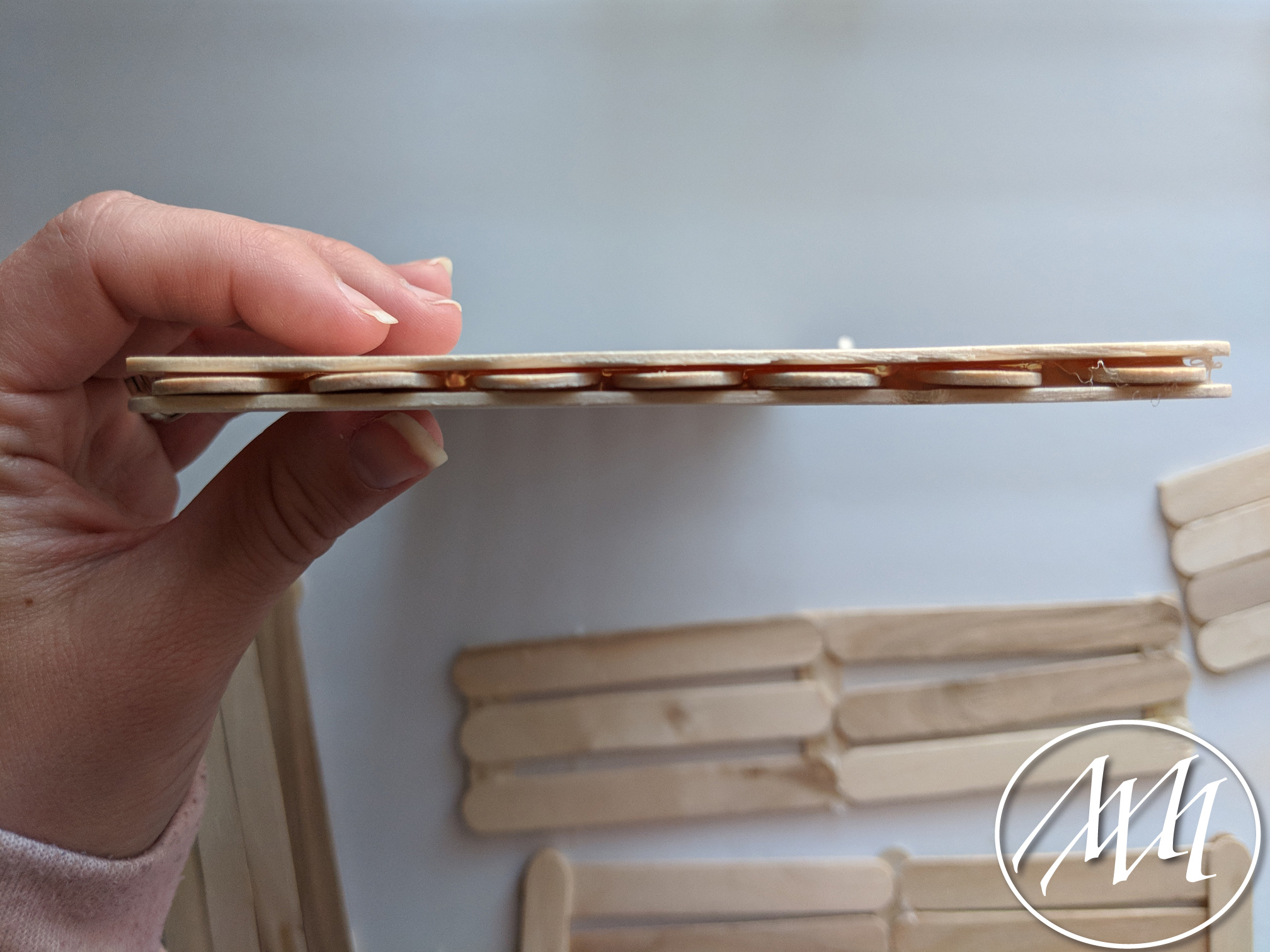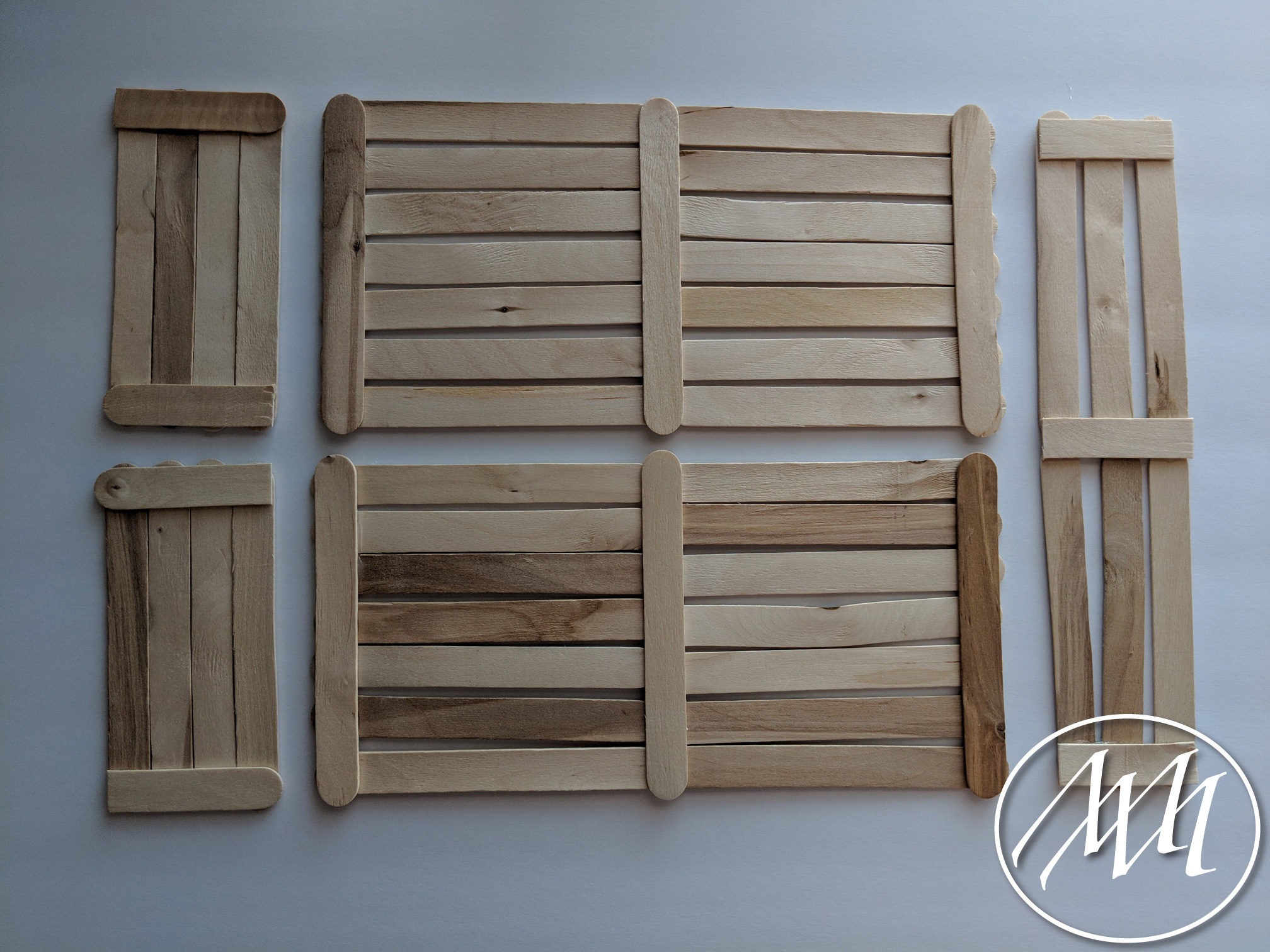 Strengthen these pieces by flipping them over and attaching 3 more popsicle sticks to match the other side for support.