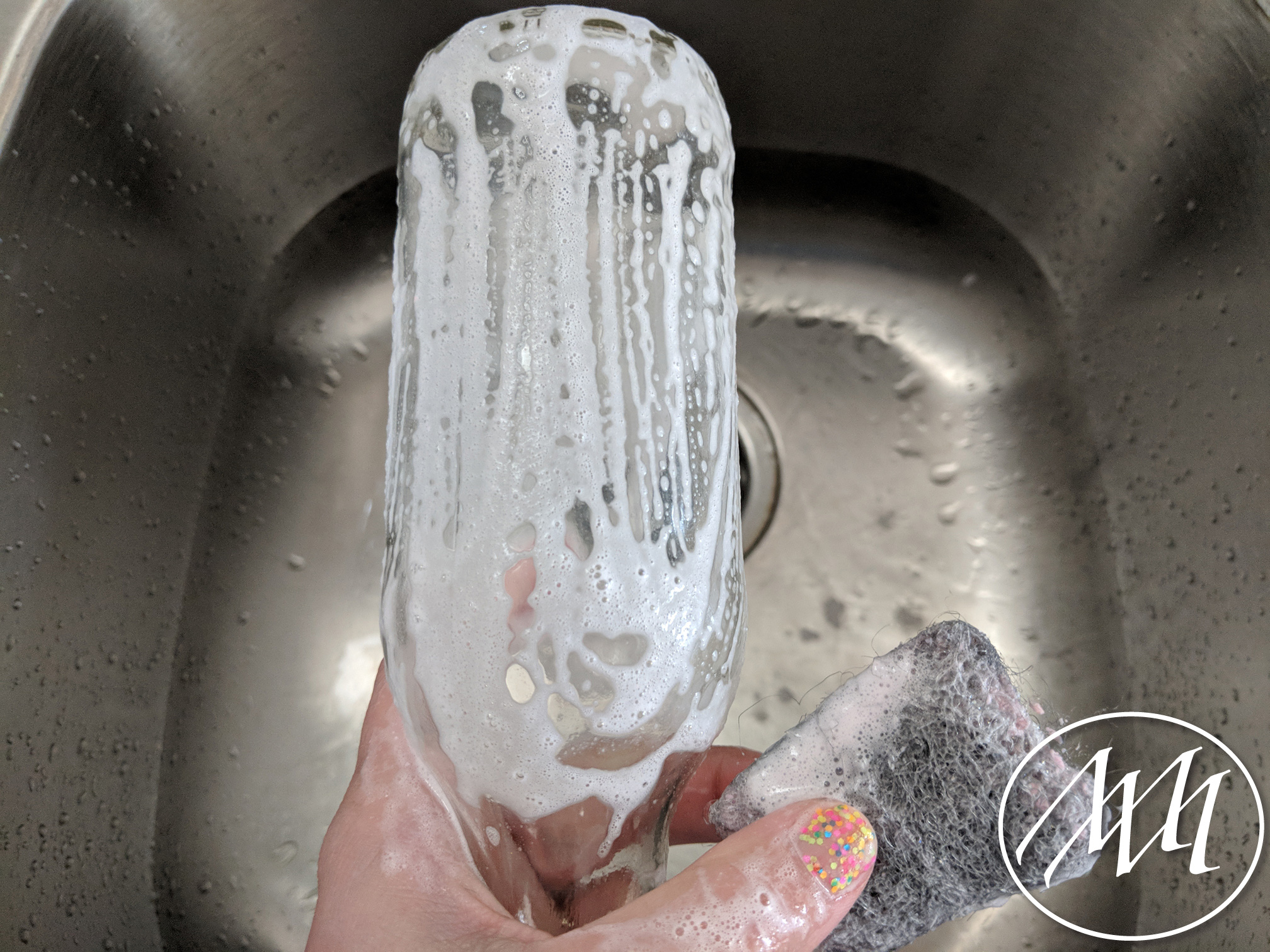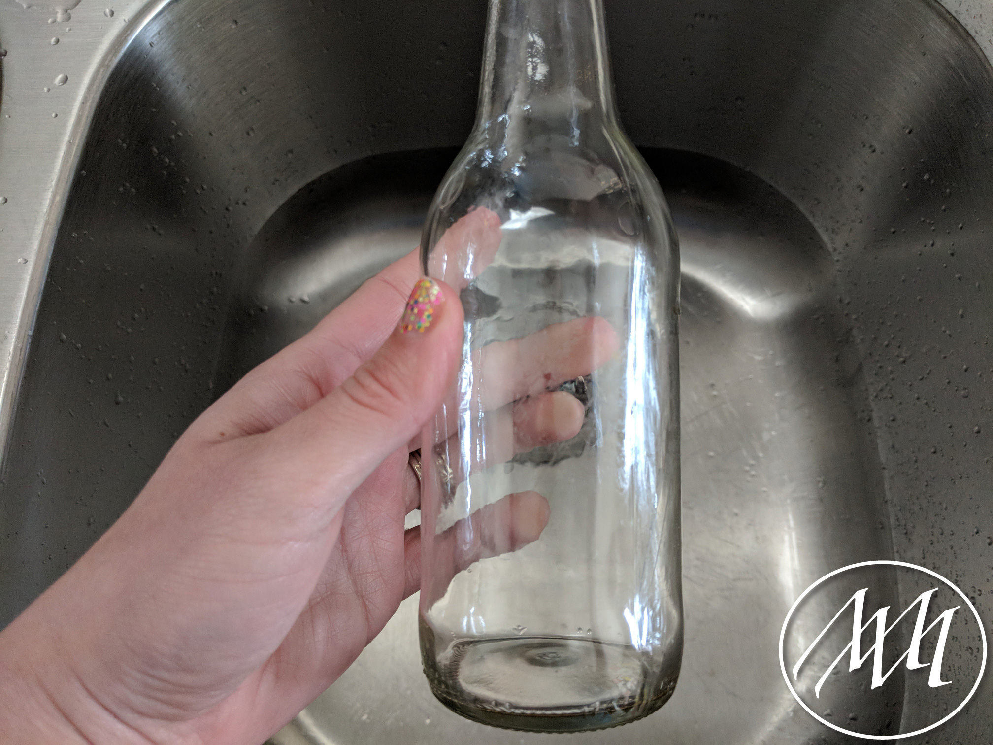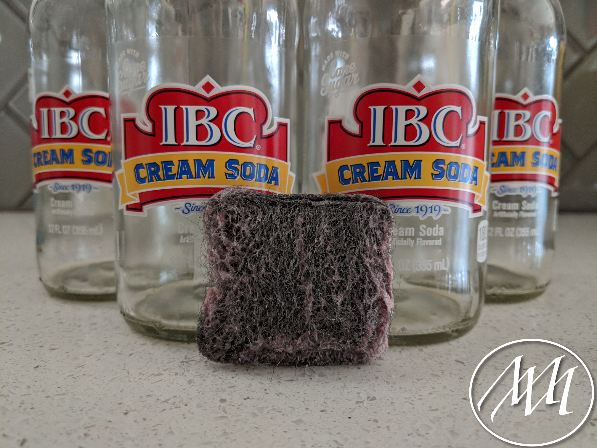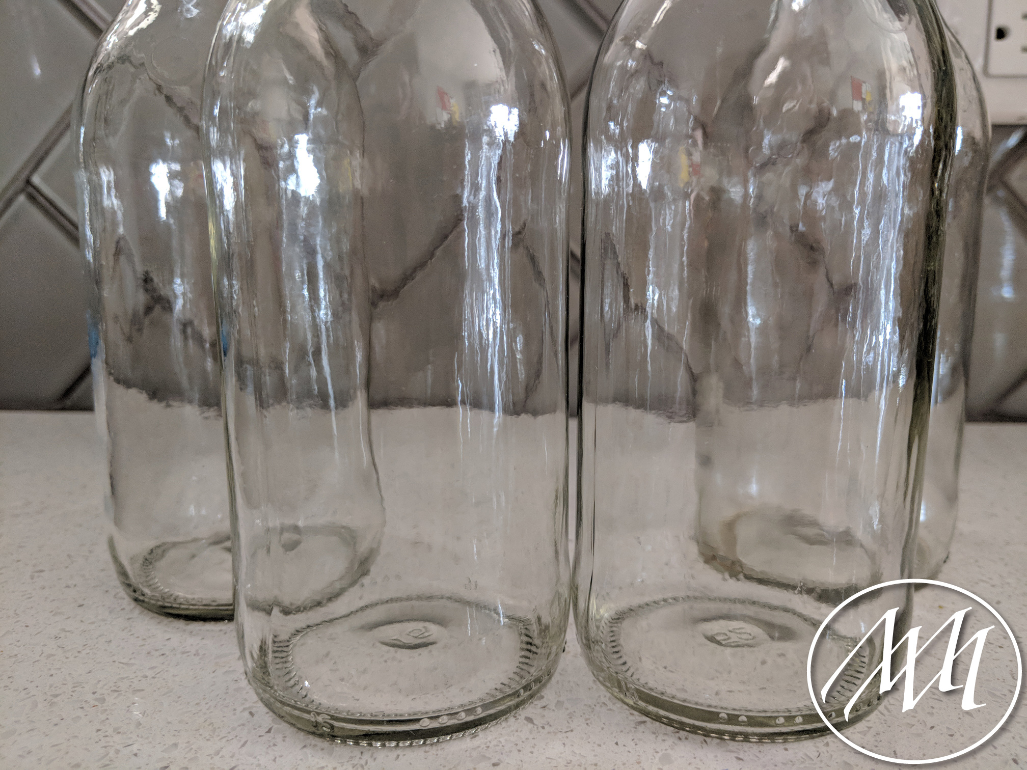 Clean out your recycled bottles. After I peeled off the labels from these IBC bottles, I used a brillo pad to scrub off any residue. I also like to use the brillo pad to remove any dates or information printed on the bottles. This is just a personal preference, but I think it gives them a cleaner look.