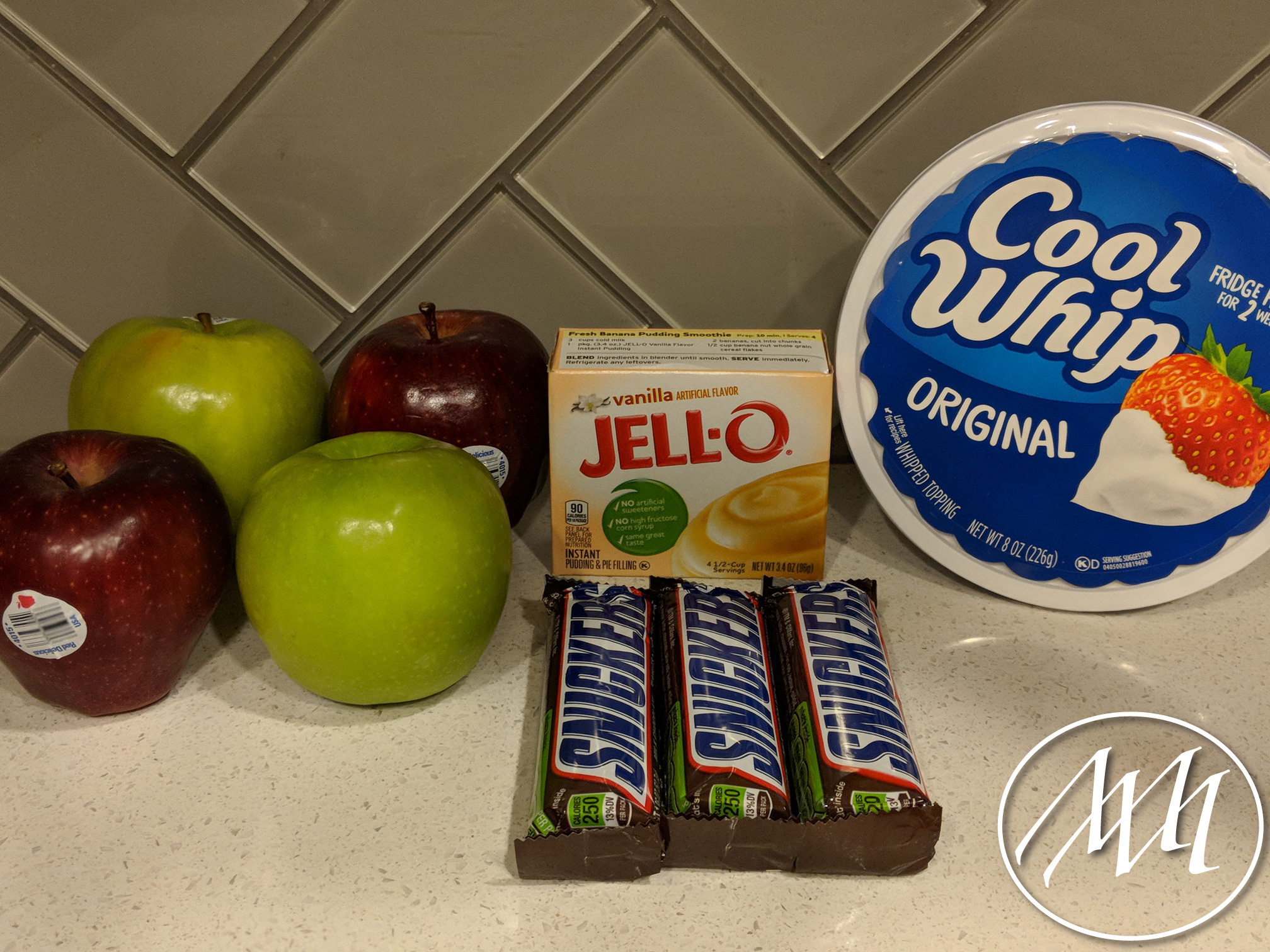 - 4 Apples (I used two Red Delicious and two Green Fiji)