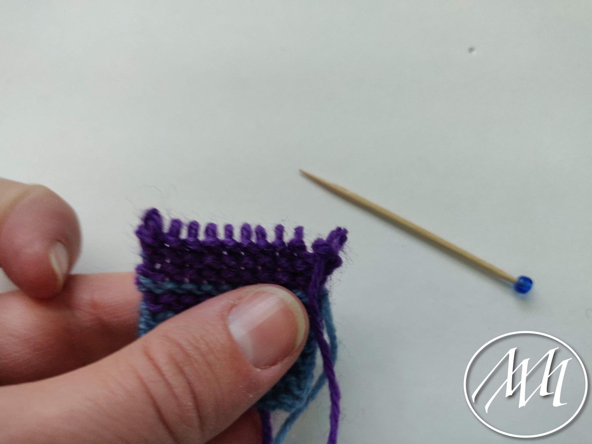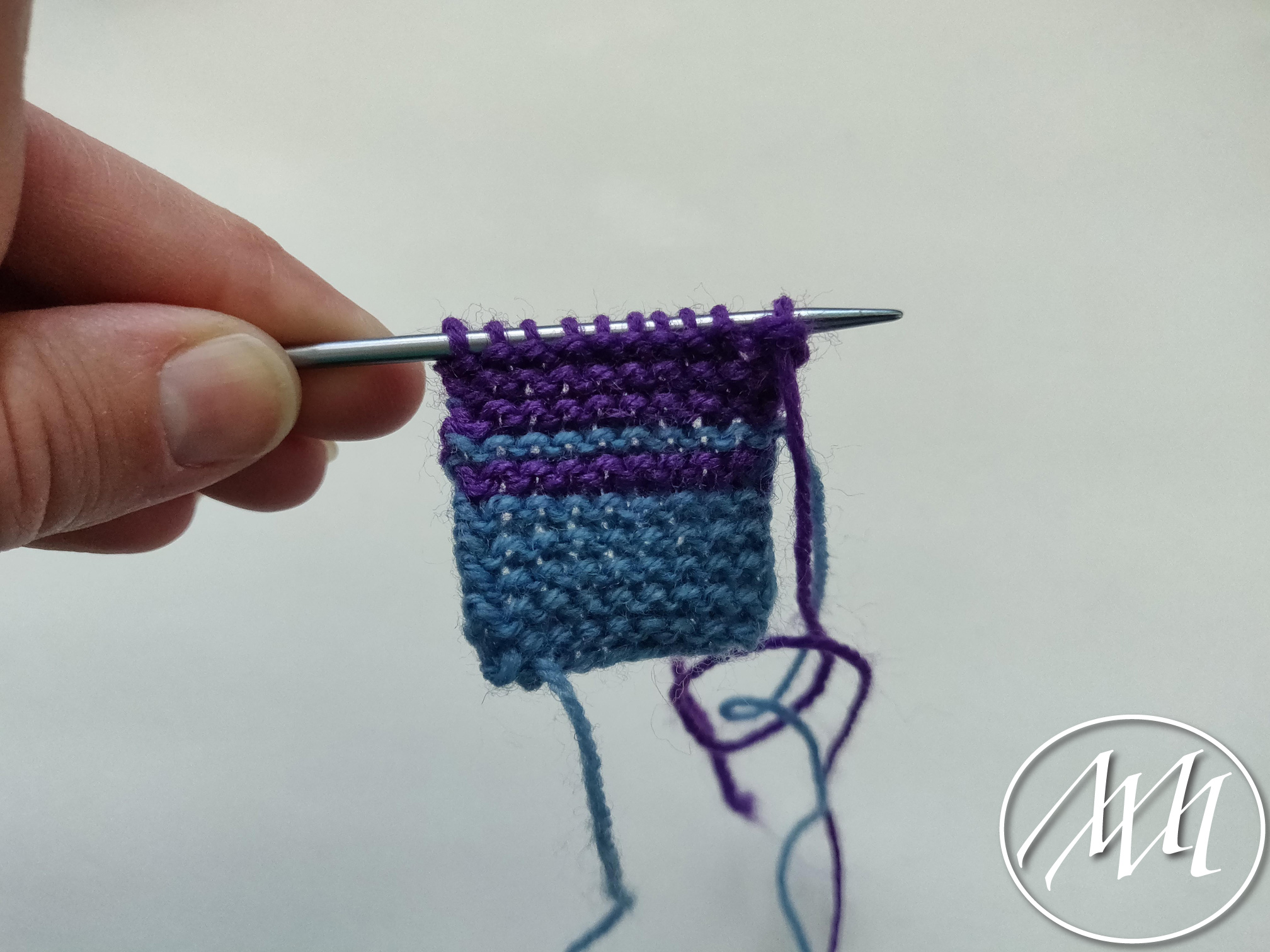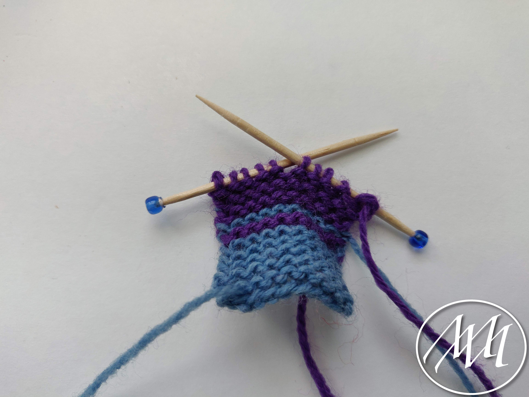 Knit about 10-20 rows depending on the weight of your yarn. I used fingering weight, so I did closer to 20. I also decided to do a stripe and then switch colors for some more interest!